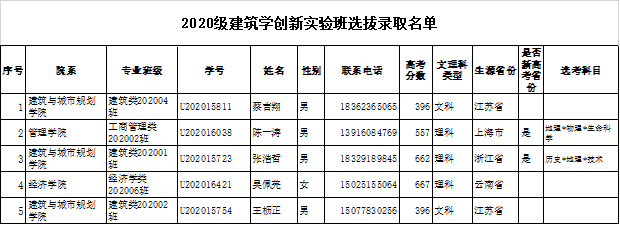 附件:2020年建筑学实验班选拔拟录取名单