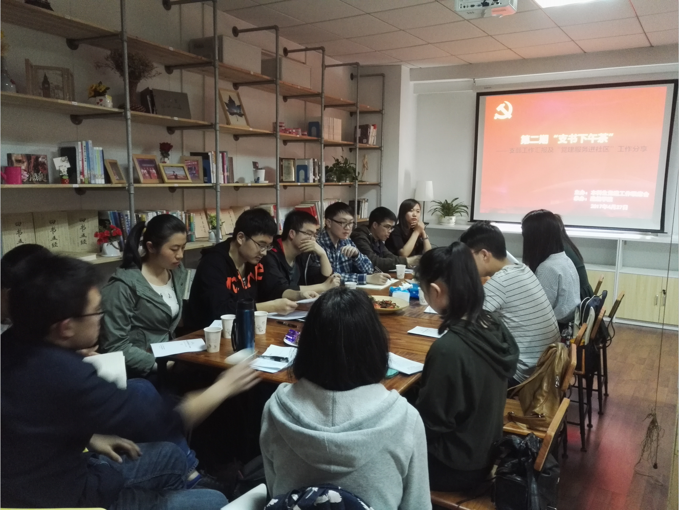 (通讯员 廖琪)4月27日下午2:30,由本科生党建工作联席会主办、公司党建工作领导小组承办的第二期“支书下午茶”活动在老员工活动中心A座401举行。公司党委员工工作部副部长刘雅然、思想教育科办公室盛静波、宋海佩老师,公司党建辅导员朱教藤老师以及来自建规、人文、法学、化学与化工、物理、数学与统计、工程科学七个院系的本科生党支部书记参加。本期“支书下午茶”围绕支部基础工作和“党建服务进社区”工作展开交流讨论。活动由taptap点点体育本科14、15、16级联合党支部成员陈若宇主持。