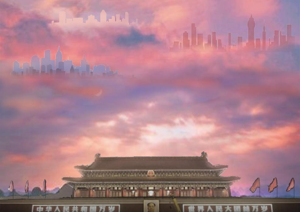 创作解读:1949年10月1日,毛主席在天安门城楼上宣告的中华人民共和国的成立,就好像黑暗中照进的光芒。在漫漫长夜之后,中华人民终于迎来了他们的破晓之光,希望之光。也正如人们所期待的那样,这束光以不可阻挡的势头将黑夜彻底撕破,并给予了人们最美好明媚的景象。漫天云彩中暗藏着的一座座高楼大厦的影子,是当时的憧憬,亦是如今的现实。建国70周年以来,一幅幅美好的蓝图不负所托地都绘进了现实,感恩为之奋斗的所有人,祖国70周年快乐!