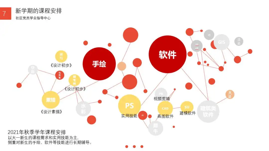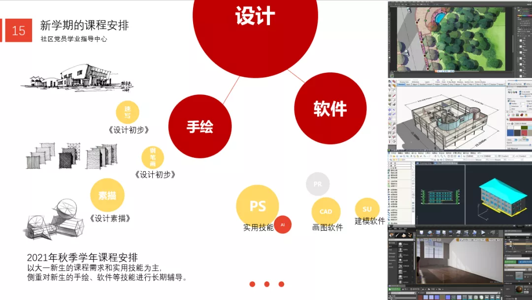 2019年以来,党务中心实践部基本做到了每周邀请优秀的同学为需要的同学进行课程辅导。今年,部门将以大一为主的低年级同学为主要服务群体,开展与学业相关的技能培训。在手绘方面计划进行零基础绘画入门教程安排,邀请优秀的同学对素描类、钢笔画等进行辅导,以适应设计素描和设计初步的课程安排。软件类的课程内容重点在于帮助同学们入门,我们计划开展零基础软件教学,一步步带领同学们学习基础软件。只有在低年级打好基础,才能更好地服务以后的设计。