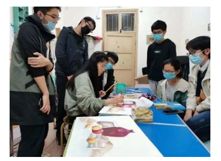 (图为20年秋张謦文学姐在课上向大家分享水彩经验)