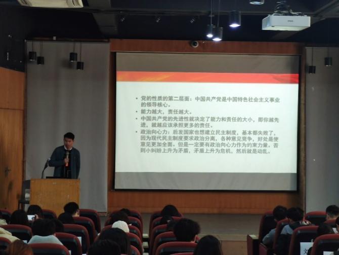 11月14日,学员们集中进行党课学习。在《中国共产党的性质》这一讲中,孙伟老师首先阐述了政治、党、政党的基本概念,然后从 “中共一大”“开天辟地”“改天换地”“翻天覆地”“惊天动地”五个阶段讲述了中国共产党的诞生过程。从100年前承载民族希望的小小红船,到如今已成为承载14亿中国人民希望的巨轮,中国共产党始终牢记初心和使命。接着,孙老师深入讲述了中国共产党的性质,筑牢了学员们对于党的性质的理解基石。