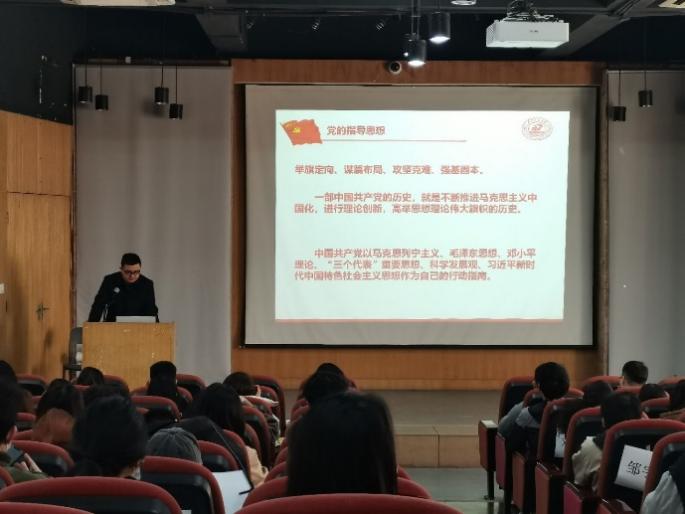 《中国共产党的指导思想》课上,靖咏安老师首先讲述了党的指导思想的演进历程,然后系统的阐述了“马克思列宁主义”“毛泽东思想”“邓小平理论”“三个代表”“科学发展观”和“习近平新时代中国特色社会主义思想”的内容以及其与中国时局的关联。