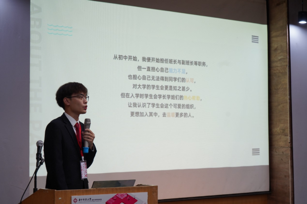 伴随着主持人铿锵有力的话语,学代会正式拉开序幕。首先由团委辅导员赵爽老师作筹备工作报告。赵爽老师从主题、届次、主要议程、代表名额,分配原则等方面介绍筹备工作并预祝大会圆满成功。