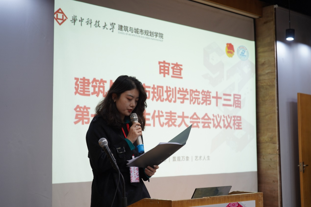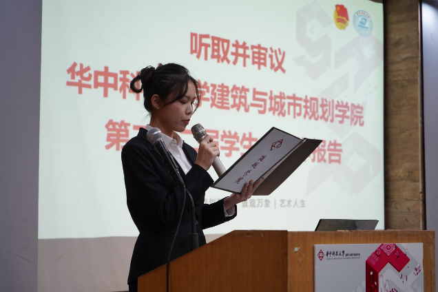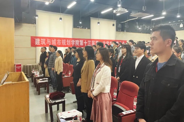 接下来,大会正式开始。第一项,由主持人介绍莅临本次大会的领导和嘉宾。他们是:副经理彭翀老师、党委副书记何立群老师、建筑学系副系主任王振老师、城乡规划学系副系主任王智勇老师、景观学系副系主任殷利华老师、设计系党支部书记侯云鹏老师、设计学系副系主任王祖君老师、校团委梁栋老师、17级辅导员兼学工组组长杨柳老师、18级辅导员兼党建辅导员庞灿楠老师、19级辅导员兼团委辅导员赵爽老师、20级辅导员兼心理辅导员闫超老师、21级辅导员兼资助辅导员叶少华老师、校员工会主席团成员代表和院系主席团成员。