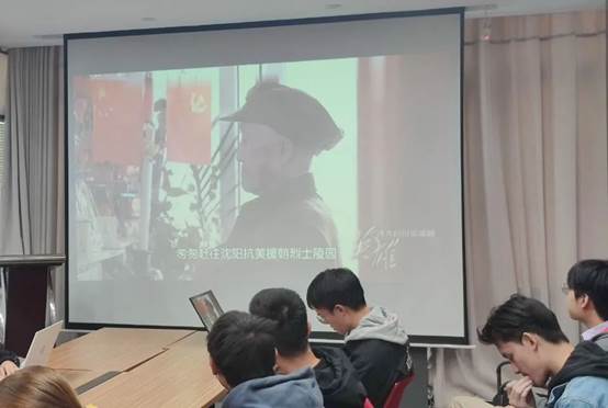 会议接近尾声时,同学们一起观看了班长金秋和她的党课小组在实践中制作的视频,内容一帧帧一项项都充实有趣,将国史党史娓娓道来,同学们看得津津有味。