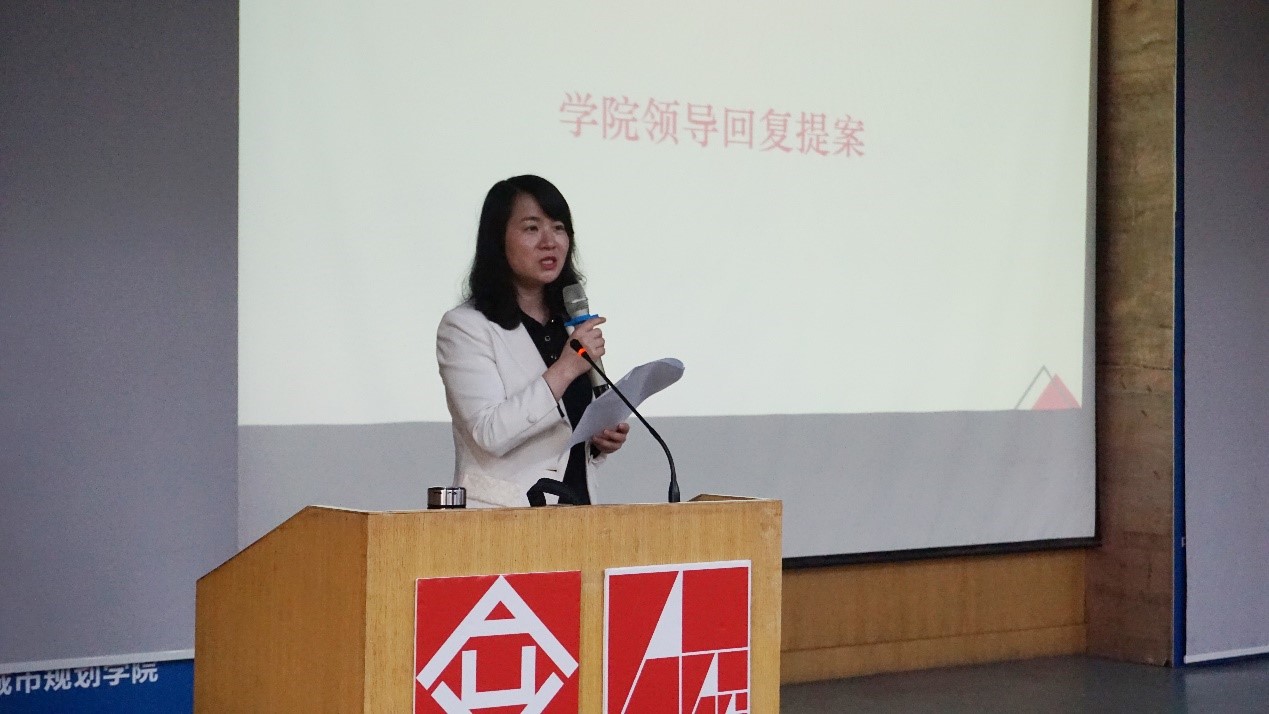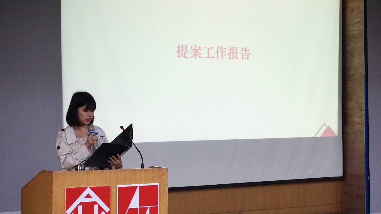 第二部分,提案回复。员工会副主席曹悦进行提案工作报告后,经理助理刘晖老师针对紫菘七栋员工中心开放、教室情况查询、专业课课程设置、学习资料共享、画具更新等公司产品方面问题进行了回复。何立群副书记则对宿舍门禁、早餐供应、教学楼座椅维修、热水供应、电动车充电桩数量、自动贩卖机品种等生活服务和权益保障类提案进行了回复。