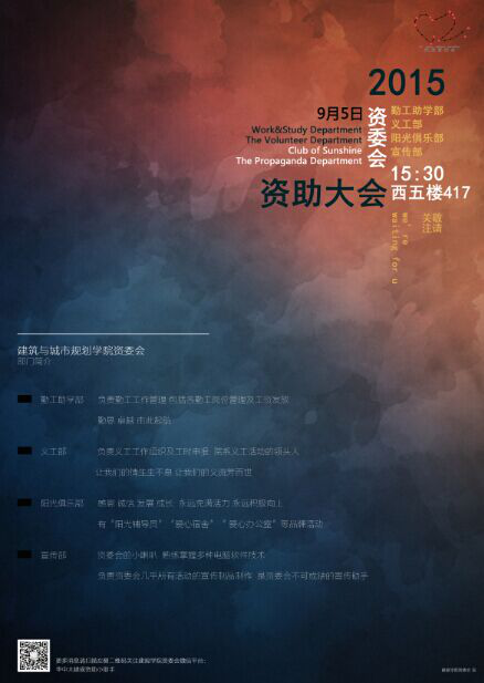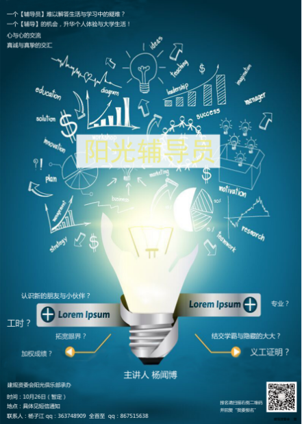 生入学教育”思想,举行展开的院系资委会活动,目的在于为刚刚入校的新生进行一场中小型的“入学教育”与“老员工活辅导”,在一个更为亲切的环境中,对新生进行老员工活知识的普及,及在一系列的后续活动中,建立辅导关系,互相帮助,逐渐解决专业与学习生活上的问题。