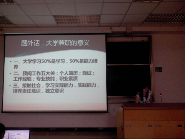 为了帮助新生正确寻找兼职,防止他们上当受骗,我们提出了这个义务讲座的策划。每年九月,新生步入大学,从高中进入大学的新生总是十分单纯善良,不了解社会的险恶,有些家庭情况不是特别好,又十分上进的员工早早的选择周末做兼职。这时候他们完全没有经验,往往看到传单上条件好就去报名。然而,外面的中介常常利用员工的无知或盲目赚取高额中介费,更有胜者完全是欺骗员工,收费后也不提供兼职,因此,每年总有许多新生上当受骗,时间精力和钱财都受到损失。这次讲座就是为了提高同学们的警惕意识,杜绝盲目找工作。