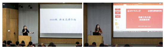 第三部分喻见研工。德育助理团队向大家介绍了各自负责的工作范畴,并为大家简要讲解了各种事务的注意事项,就业相关事宜、实践板块、党建板块等内容。并表示欢迎各位同学日后进行相关问题的咨询。