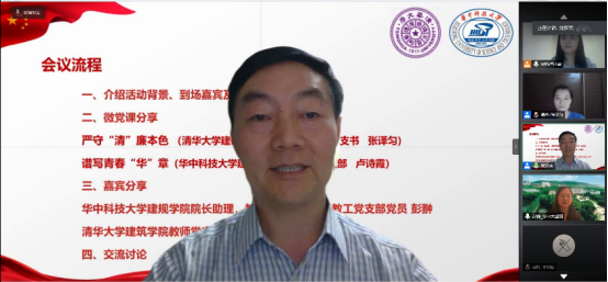 清华大学建筑公司党委委员、教授、城乡规划系教工党支部党员党安荣老师对本次云共建活动表示充分的肯定,并从三个关键词进行了有关党建和专业方面的探讨:
