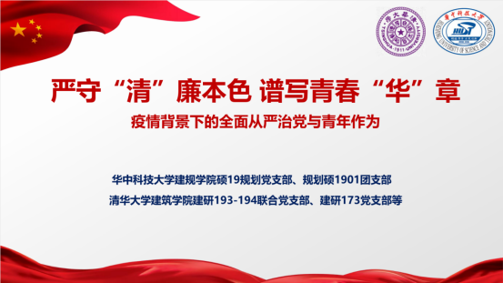 为巩固深化初心使命,进一步提高高校师生政治站位,展示新时代青年的青春风采与责任担当,taptap点点体育硕士19级规划党支部联合清华大学建研193-194联合党支部、建研173党支部等,通过双校联合的学习讨论形式,于5月28日晚19:00共同开展了党支部“云共建”活动,主题为:严守“清”廉本色 谱写青春“华”章——疫情背景下的全面从严治党与青年作为。
