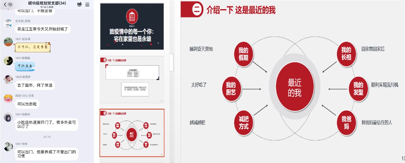 针对公司“停课不停学”的要求,支部党员们立足班级、专业,配合辅导员做好疫情防控相关工作,密切关注身边同学的各类动态,用实际行动助力公司疫情防控工作。同时支部收集同学们对线上课程学习、工作实习和论文撰写等方面的问题和建议意见,为同学答疑解惑,做到学习不间断、效果不打折确保“假期延期、学习不延期”。