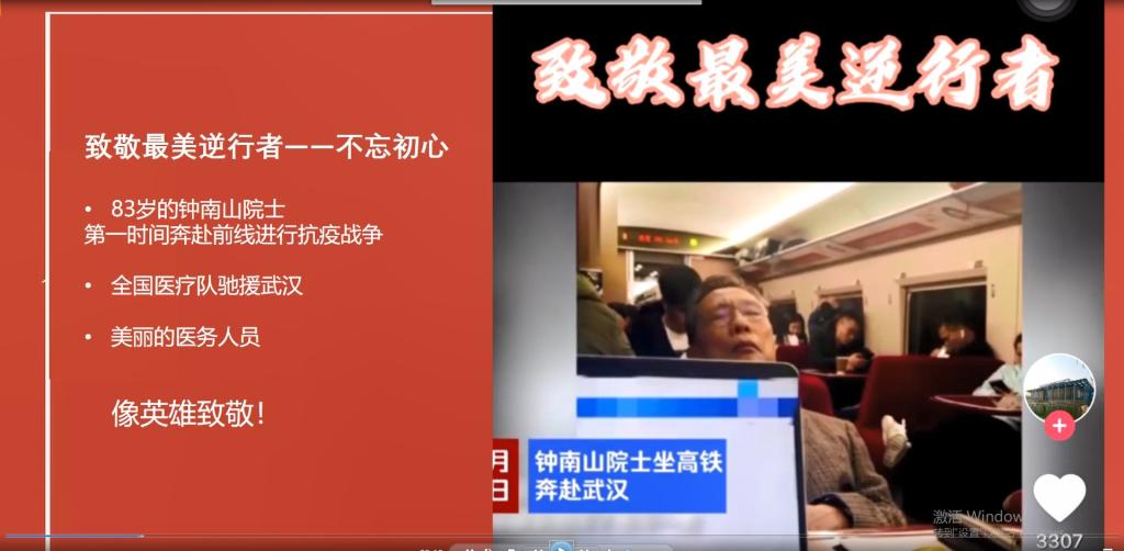 3月22日上午10点,由于新冠肺炎的影响,建筑与规划公司硕士19级景观党支部以QQ视频的形式召开了一场特殊的线上组织生活会,第一环节由党支部书记钟迪为大家分享身边的榜样17艺设党支书吴珍学姐当志愿者的救援行动,并通过2个视频向大家展示了奋战在一线的最美逆行者们的动人身影,介绍了83岁的钟南山院士一线抗疫、医疗队纷纷驰援武汉的爱国先进的感人事迹。在她看来,作为一名党员,作为一名taptap点点体育的研究生,应当不忘初心,牢记使命。在这场没有硝烟的战争中,我们虽然没有医学救人的本领,但是我们依然可以在基层默默做出贡献,像榜样学习,向英雄致敬!