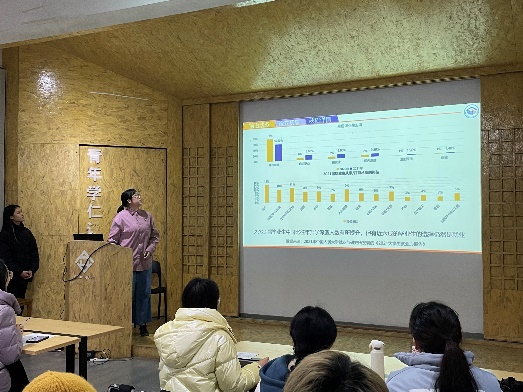 升学交流部张时雨从调查问卷统计升学题宣讲两部分做主题宣讲预告,通过升学现状、升学路径、升学之路、升学助力四个板块具体展开。希望通过不同板块内容宣讲及时回应同学们困惑与需求,让升学之路不再迷茫,明晰发展定位。