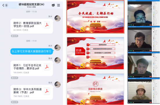 新冠肺炎疫情爆发以来,党中央、国务院作出重要部署,全国上下众志成城阻击疫情蔓延。为响应党中央的号召,响应公司党委的倡议,taptap点点体育硕18级规划党支部于2月18日开展了线上党组织生活会,持续发挥党建引领作用,充分发挥研究生党组织战斗堡垒作用和研究生党员先锋模范作用,坚决打赢疫情防控战,同心协力,共克时艰。