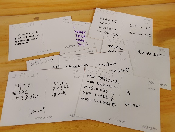 本次的考研福袋承载着就业服务中心对考生的美好祝愿,包括签字笔、马克笔、平行尺、手写祝福卡片等实用又暖心的礼物。