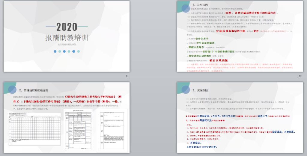 (9)负责收齐所有作业的电子文件,完成该课程教学的手册。期末考核要求大家完成《研究生助管助教工作考勤与平时考核表》、《研究生助教/助管工作考评表》和教学手册等考核文件。
