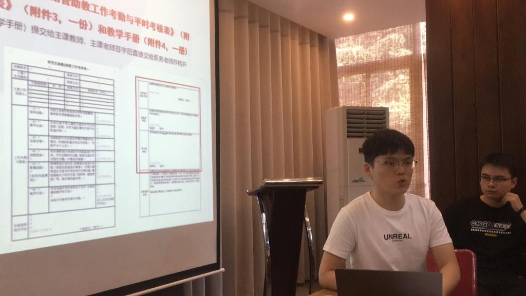 然后,辅导员杨柳老师向大家提出进一步的工作要求,提醒大家除了日常事务外,要听从主管本科教学的系主任和学工组的安排,完成相应任务;强调了助教工作的纪律性与严肃性,要严格按照课程安排进行工作,对于没有认真履行职责,甚至主观造成错误的同学,还