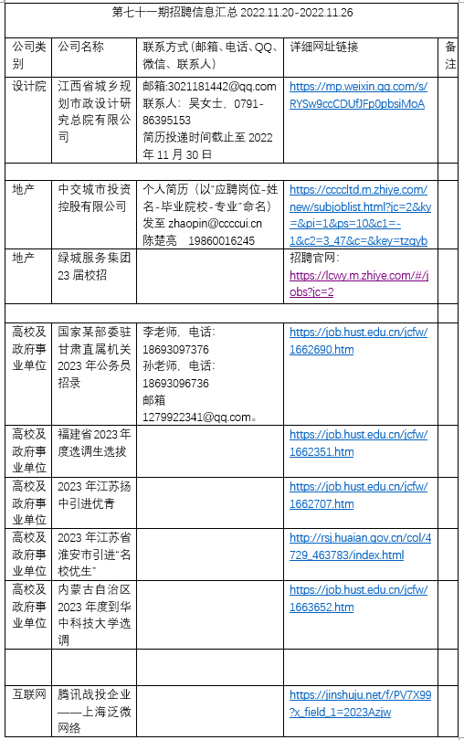 第七十期招聘信息汇总2022.11.20-2022.11.26