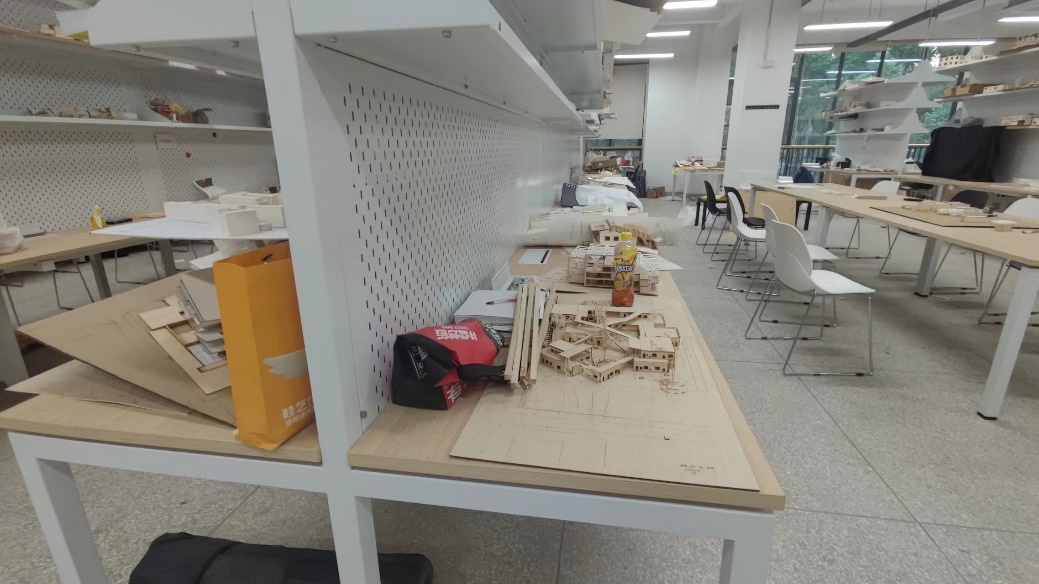 1、个人桌面上堆积模型废料、外卖餐盒、个人物品等。