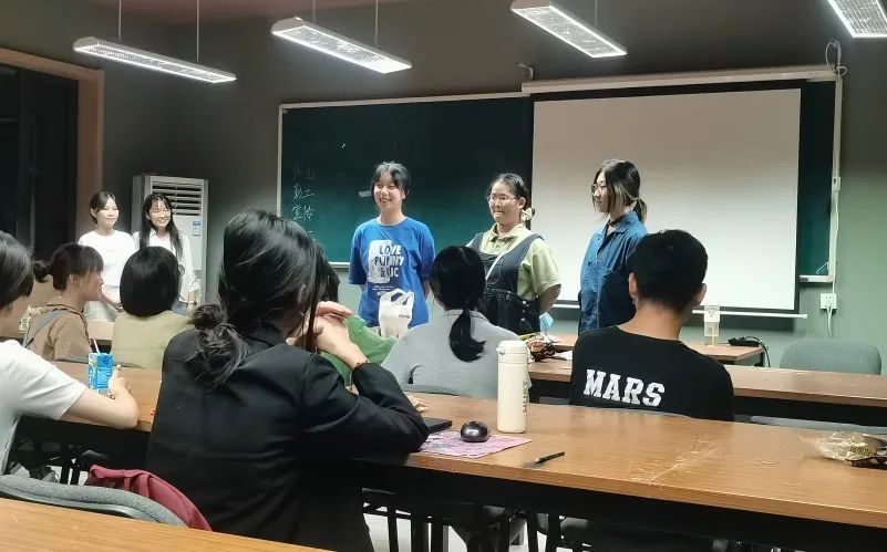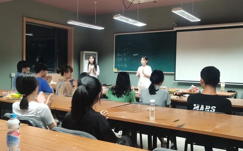 在介绍完毕之后,顾问团为大家准备了一个小游戏。每个部门的新成员站上台,由其他三个部门来认名字,认出一个名字所在部门积一分,最后积分最少的部门部长或副部长要上台表演节目。游戏最后宣传部以一分之差不幸落败,派出副部长黄艺菲同学上台表演。游戏期间同学们热情活泼,彼此之间的互动交流也随之增多。