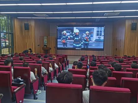 (同学们在观看消防宣传片)