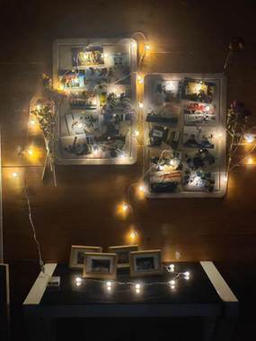活动中,团队先广泛收集各部门特色活动照片,涵盖新闻中心 “春日灵感盲盒”、社会实践部养老院手工陪伴等精彩瞬间,精心筛选后打印制作成照片墙;随后对会议室进行全面打扫清理,移除杂物、规整空间;最后搭配灯带营造柔和氛围,摆放鲜花与展示相框点缀细节,让原本简洁的会议室更显温馨雅致。