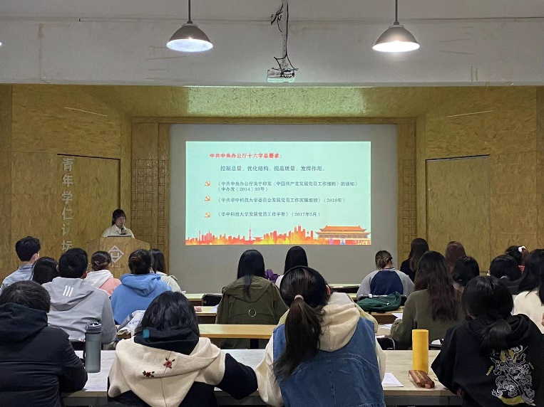最后,各党支部书记和本硕党务管理相关部门前往南四楼110教室开展党员材料审核培训会。刘静就近期党员发展过程中的相关注意事项逐一详细的进行了说明和讲解,包括入党志愿书、思想汇报和自传的撰写规范,党员培养考察综合材料的填写格式和各日期的先后顺序。井井有条的逻辑、耐心细致的讲解让各支部书记对党员发展过程更加明晰,大家纷纷表示收获颇丰。