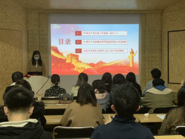 会议首先是主题党日内容的学习,对《中国共产党支部工作条例(试行)》、《中国共产党普通高等公司基层组织工作条例》进行解读,同时深刻学习了纪念辛亥革命110周年大会习近平总书记讲话精神。