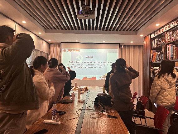 会议的最后,全体支部党员宣誓入党誓词,同志们将不忘初心,牢记使命,在建党百年之际充分发挥党支部的战斗堡垒作用。