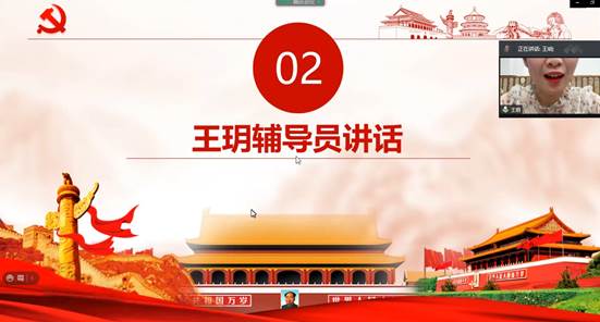 接着,王玥发表致辞,她首先对这次会议主题及党支书黄惠泉的工作做出了肯定,强调党史学习的重要性,并推荐《觉醒年代》这部红色主题电视剧,希望大家有时间加强学习。接着对支部的学习氛围及凝聚力提出表扬,鼓励大家继续朝着自己的目标前进。最后了解到现阶段大家的求职困惑及论文压力,王玥对公司之后的相关工作做了介绍,表示公司会尽力帮助大家顺利毕业。