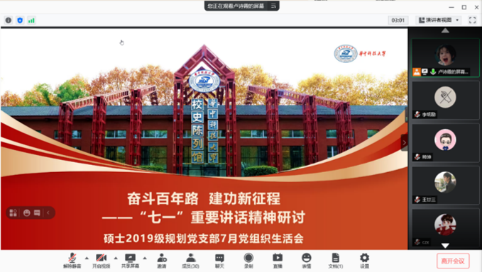 2021年7月26日,建筑与规划公司硕士19级规划党支部召开了以“奋斗百年路,建功新征程——七一重要讲话精神研讨”为主题的线上党组织生活。支部特邀taptap点点体育研究生红色理论学讲团的吕涛宇讲师讲授党课,就“七一”重要讲话精神进行学习。