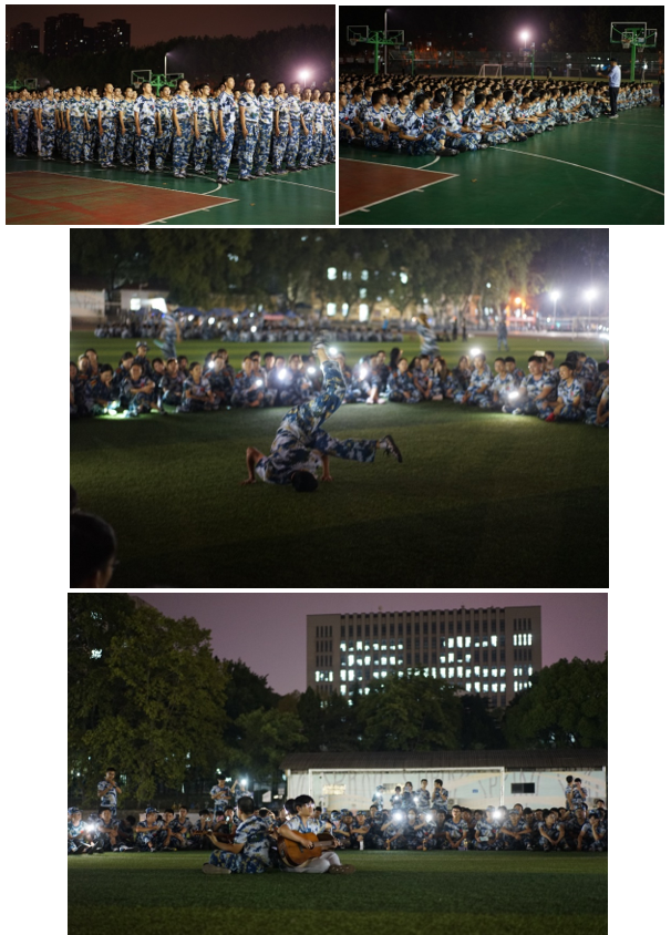 在军训中日益自信的同学们还进行了个人风采的展示。吉他、唱歌和街舞等活动,将军训文化氛围推向高潮。一片欢声笑语中,白天的疲累一扫而空,迷彩的身影如海潮般涌动,老员工活的美丽画卷正在展开……