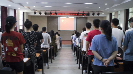 上午9时,2020级研究生新生开学典礼如期开展。研会办公室主任刘砚主持本次开学典礼,依次介绍到场的嘉宾并引导全体成员合唱国歌。