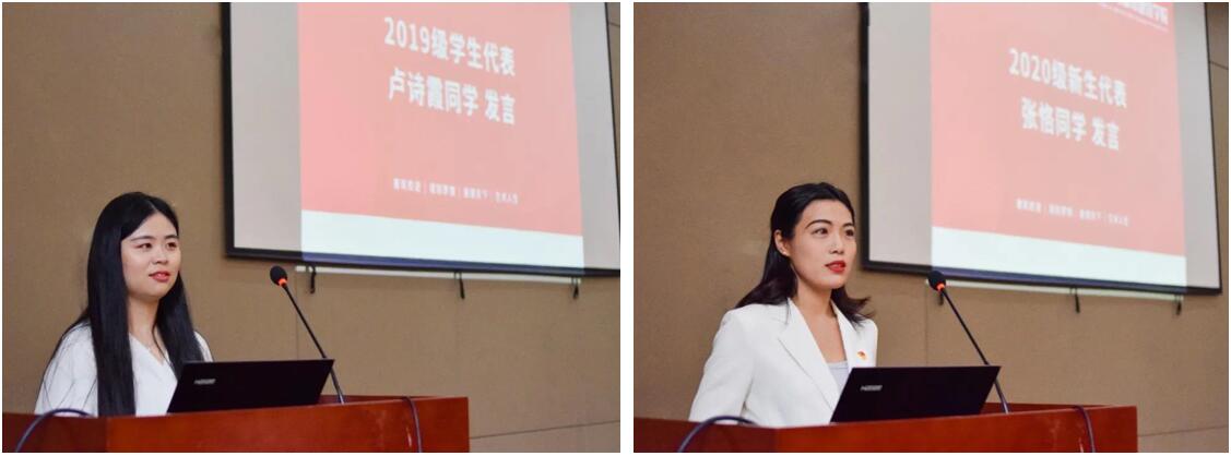 图4 新老生代表发言(左为卢诗霞同学,右为张恪同学)