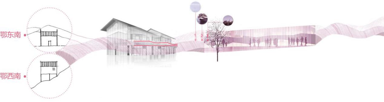 建筑与山脉关系及其应用在方案中的设计手法示意图