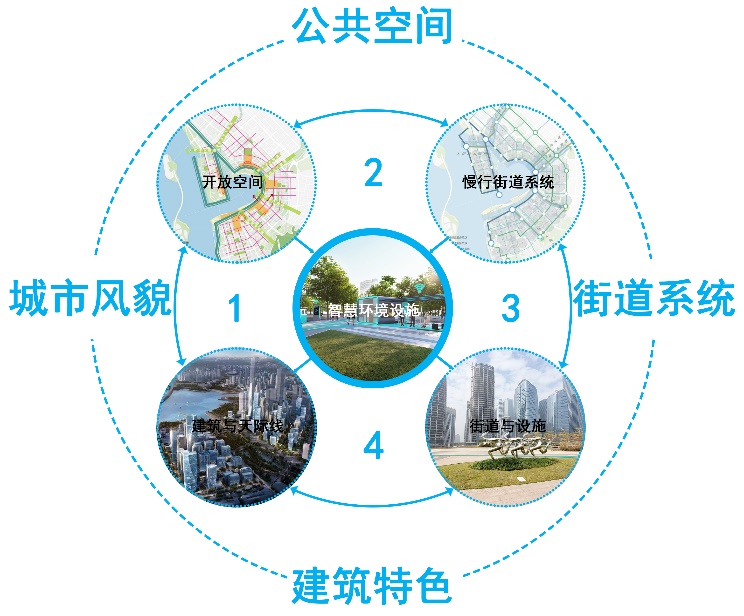 根据前海城市新中心的规划,前海片区打造具有可达性、均衡性、舒适性的慢行交通系统,将城市风貌、公共空间、街道系统、建筑特色等要素进行整合协调,融入到城市智慧环境设施的设计之中。