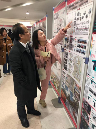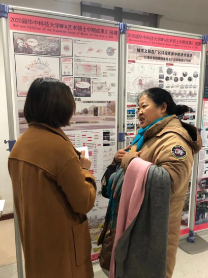 展览活动当天,设计系的同学们一早就来到现场,迎接前来看展的老师们、建筑与城市规划学的领导、各兄弟院校的老师和同学们。硕士研究生们非常热情的为观展嘉宾介绍自己的中期设计成果,现场学习气氛浓烈。