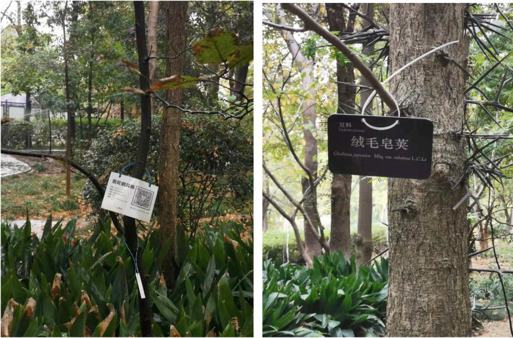 图6 珍稀濒危植物区的普陀鹅耳枥(左)、绒毛皂荚(右)(均为张明明拍摄)