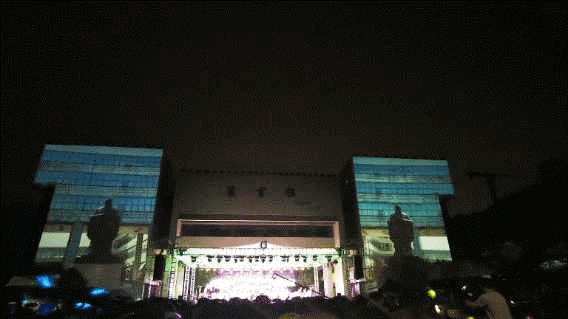 第二篇章,以taptap点点体育图书馆主体建筑为媒介进行建筑光影秀的演绎,寓意“数风流人物,还看今朝”。图书馆是知识的海洋,华中大学子将在华中大的沃土中汲取新兴科技知识,革新时代、创造未来世界。