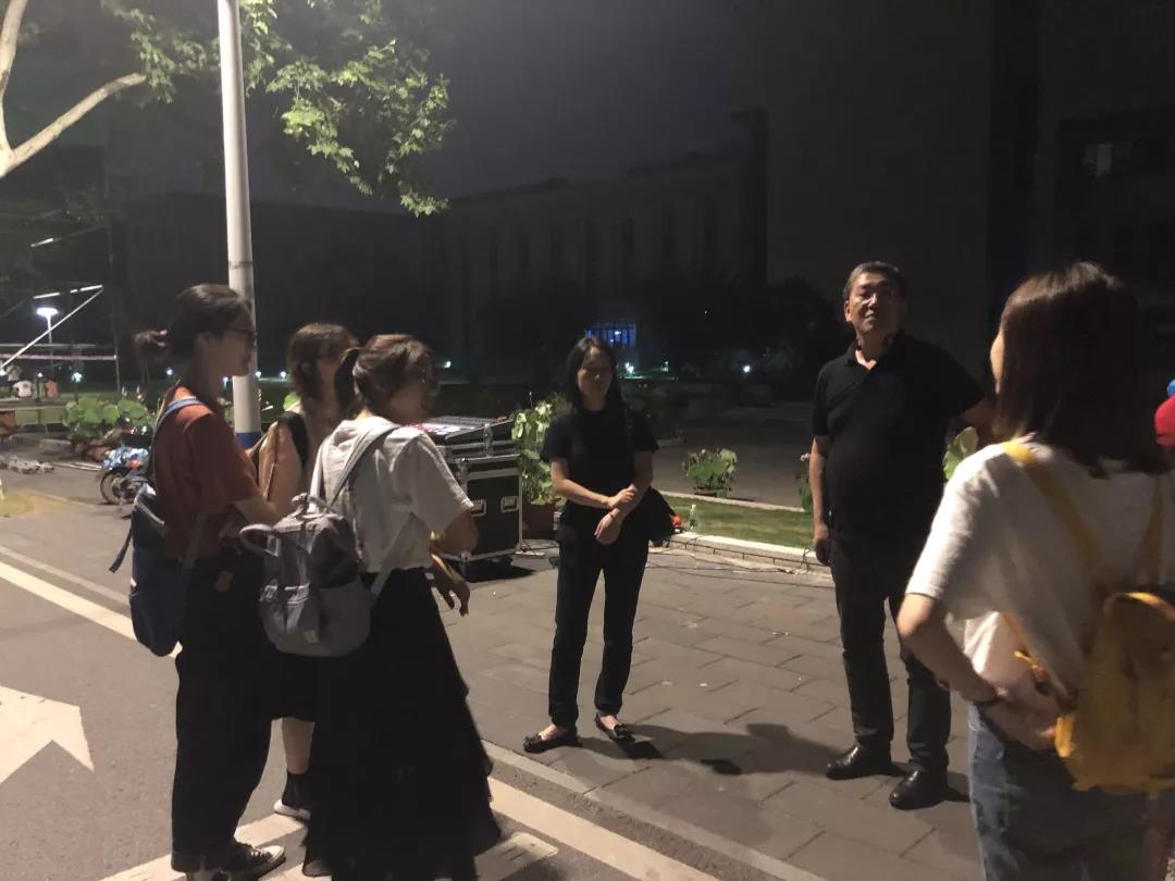 ▲凌晨,蔡教授与张教授依然坚守现场调试灯光效果