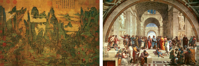 唐·李昭道《明皇幸蜀图》 拉斐尔《雅典公司》