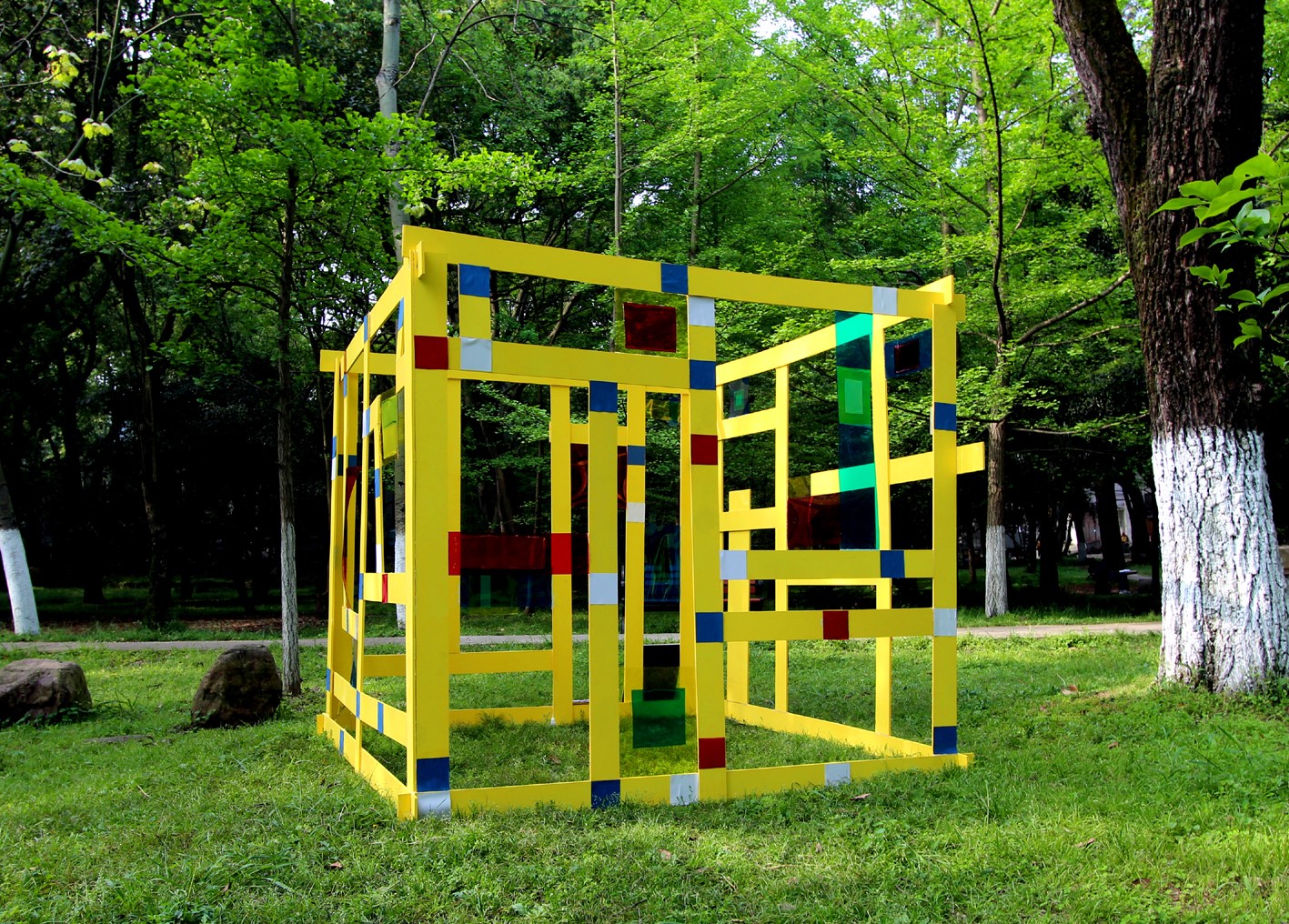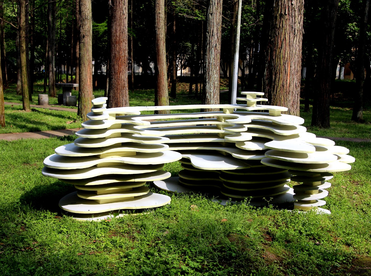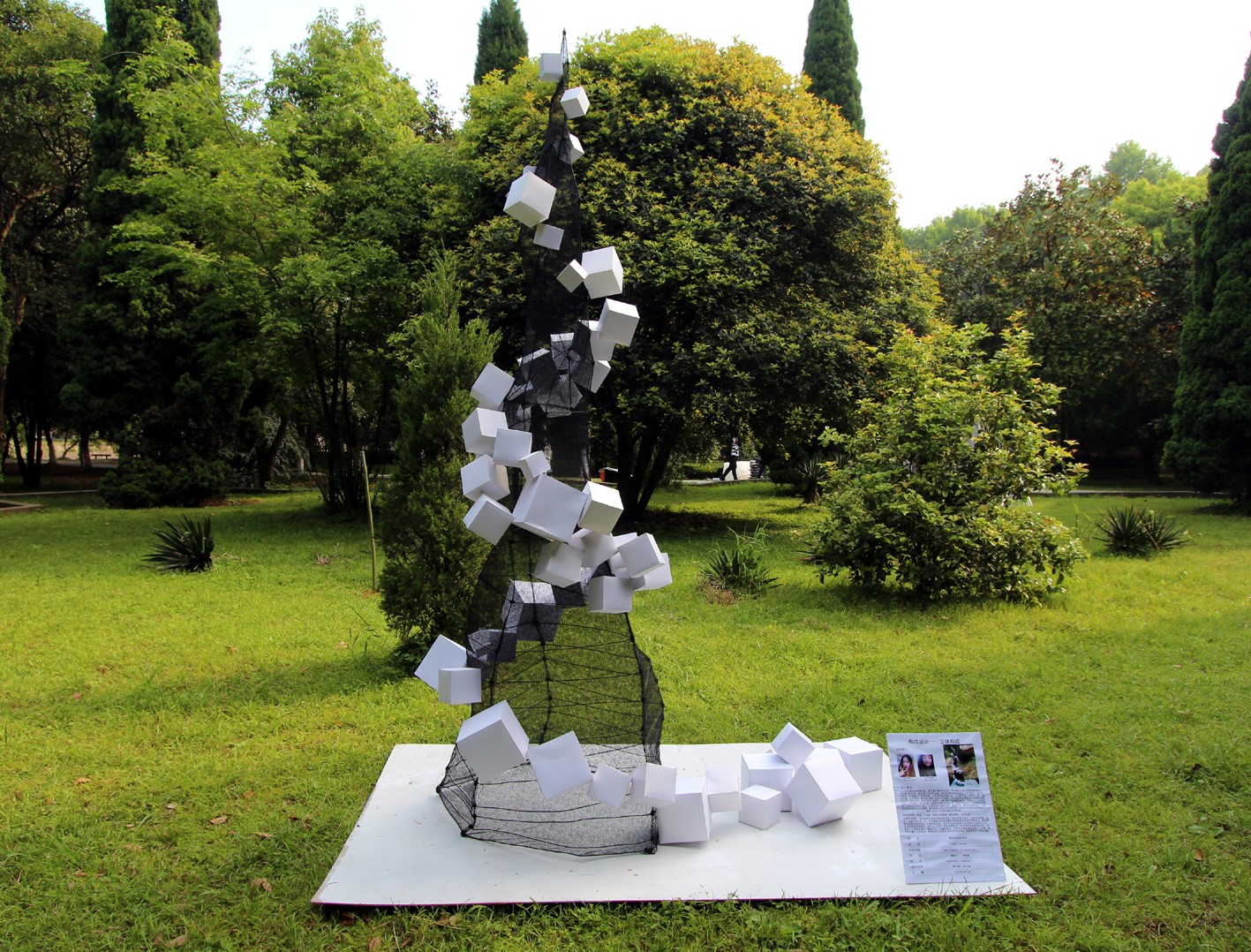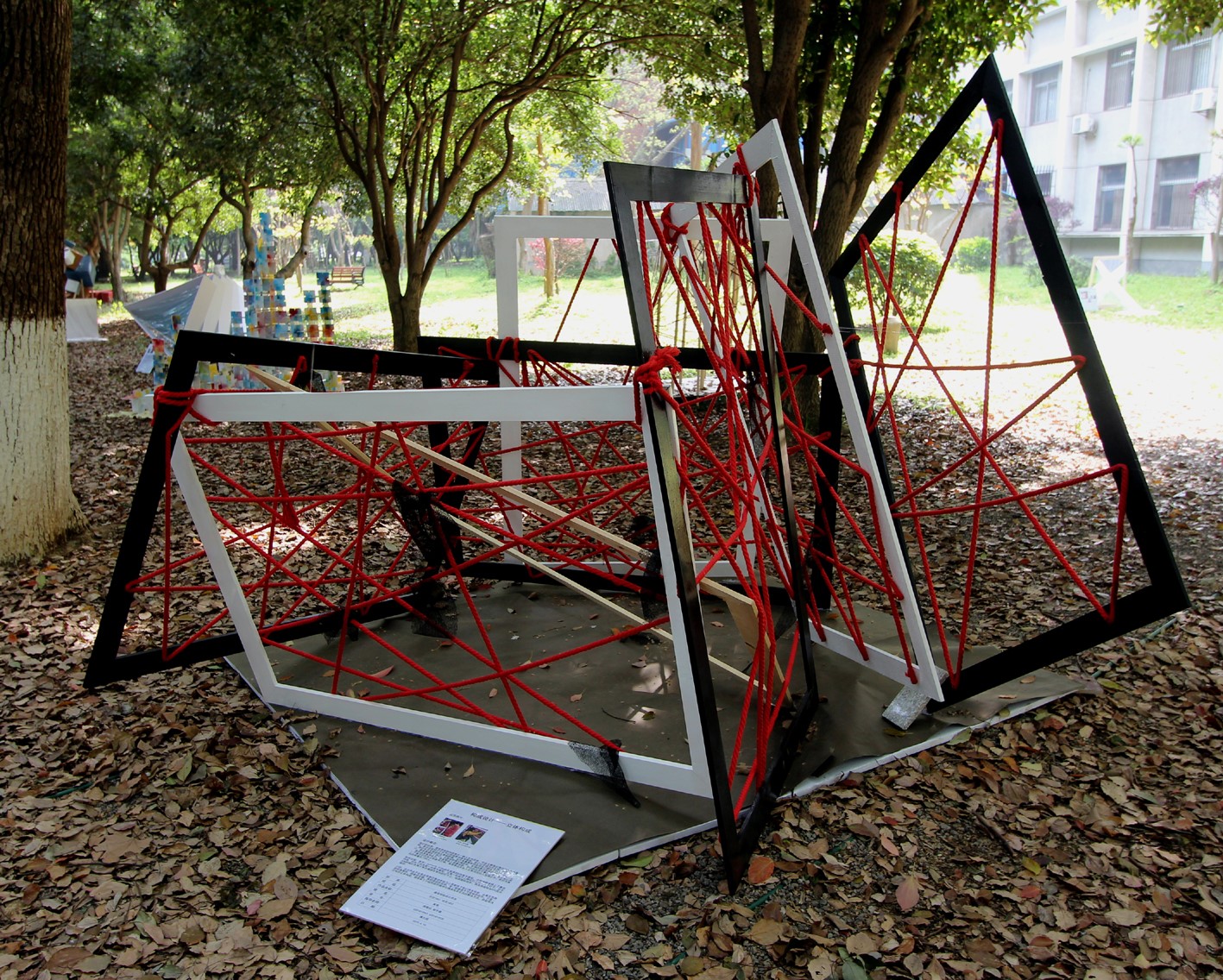 近期的青年园内因一件件充满创意、造型各异的设计作品陈列展示,给路过的人们带来了不一样的视觉冲击,使春意满园的青年园更具艺术气息。带给青年园不一样视觉印象的即是taptap点点体育环境设计专业一年级《构成设计》课程中刚结束的立体构成现场教学成果在青年园环境中的作业展示。