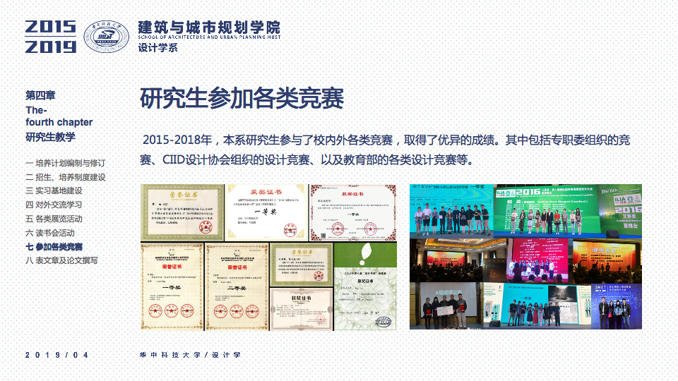 2015-2018年,本系研究生参与了校内外各类竞赛,取得了优异的成绩。其中包括专职委组织的竞赛、CIID设计协会组织的设计竞赛、以及教育部的各类设计竞赛等。