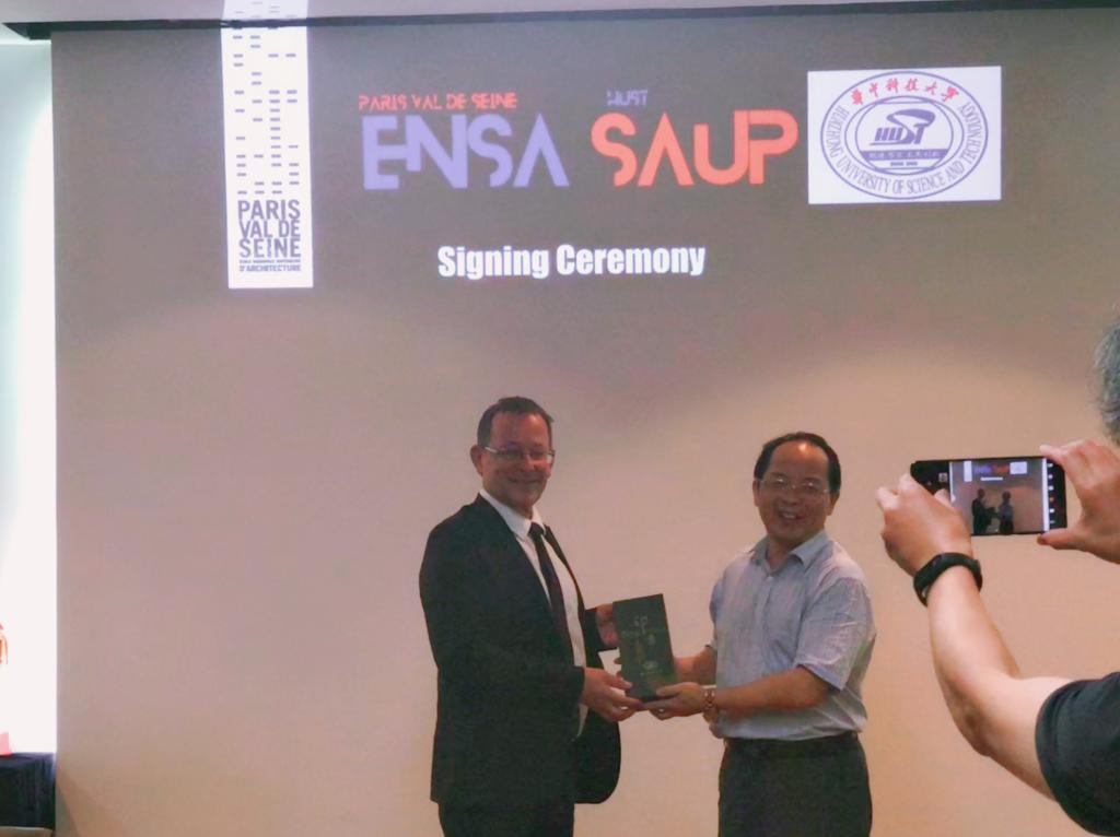 此次,双发签定了每年两次(法方来汉,中方赴法)的中法联合设计工作营,以及两校本科生为期一学期交换项目的协议。双方都对未来能进行研究生互发学位表以期待,也为两校员工获得更多拓展国际视野的机会感到欣慰。董事长Philippe Bach借此为大家介绍了法国其他公司与中国高校互发建筑学研究生学位的流程。