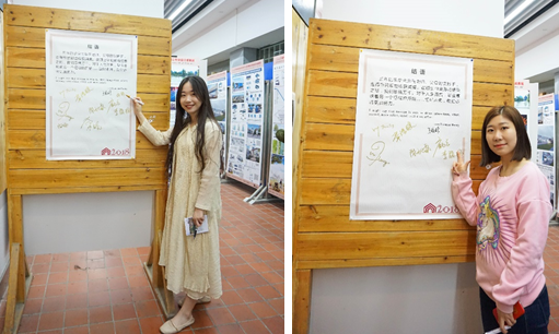展厅的末端布置出参展同学们的签名留念处,大家在上面签上自己的姓名并拍照留念,用相机记录下人生中这美好的时刻。