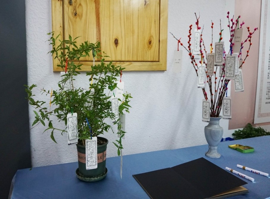2018年4月22日,在任康丽老师、尚磊老师、汪浩老师的指导下,同学们群策群力,积极投入在布展的准备工作中。为了布置出独具特色的展示效果,展厅内设计了若干植物盆栽、鲜花装饰,以及生动的小饰品,还有LED灯。同学们自制的明信片、手绘书签也成为展厅的特殊陈设。