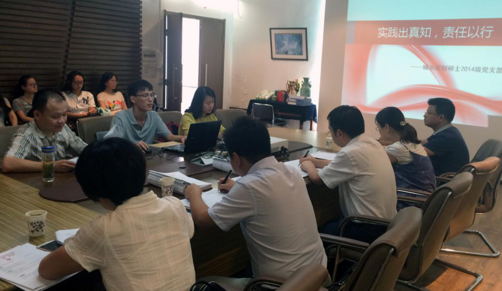 本次调研选取的基层支部是2014级规划硕士党支部。交流会上,党支书高俊阳、班长高永波以“实践出真知,责任以行”为主题,从党员基本情况、组织生活落实情况、党员发展工作、支部作用发挥、经费保障情况、进一步加强党支部建设的意见和建议这五个方面介绍了本支部的情况和相关工作开展的经验。
