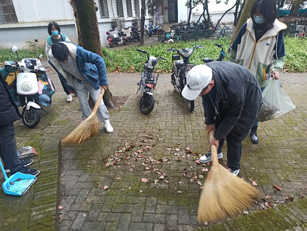 下午三点,数媒1801班的同学在南四楼集合,班长杨洪龙同学给大家讲述了雷锋同志为人民服务的奉献事迹,接着为大家分配了卫生清洁任务。班上同学拿着卫生工具来到南四楼前的雨水花园,由于寒假原因,整个花园布满了落叶和随处可见的垃圾。于是班上同学开始有条不紊的行动了起来。